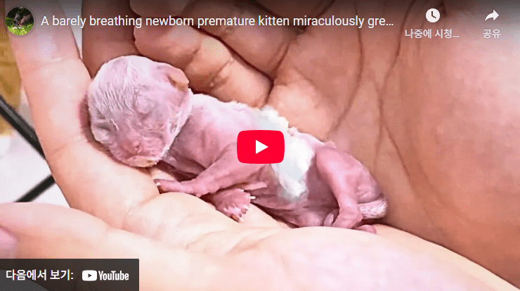미숙아로 태어난 새끼고양이 1 . 58 . 미숙아로 태어난 새끼고양이 고양이와 새끼오리들 Related Articles 1 778 장미꽃이 아름다운 이유 아세요? 1 481 오늘은 대한[大寒]입니다 0 456 건강과 벗 0 403 1월의 끝에서 Author: 글쓴이