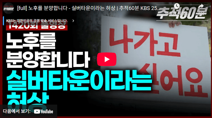 실버타운이라는 허상 0 . 34 . 실버타운이라는 허상 아들 살해동기를 알아보니 Related Articles 0 448 컬투쇼-레전드 0 156 이태원 참사 출동 실종 소방관 숨진 채 발견 0 156 음주 역주행 사망 사고 0 189 손흥민 차원이 다른 쐐기골 Author: 글쓴이
